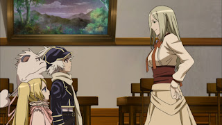 So now we’re left with the fundamental question of the day still unanswered – who is this guy? He was Gauche for 17 years, then he was Noir for a while, then Gauche for a bit, now Noir again. I stand by my belief that it isn’t that simple – this current young man is both Gauche and Noir, and always will be. Maybe Lag’s shindan was capable of returning only Gauche’s memories and not his heart, but those memories will change who Noir is. He clearly cares for Roda, and I think the evidence is pretty strong that he cares for Lag and Sylvette too, based on the fact that he didn’t hurt them (he certainly could have) and left quietly. Could Gauche be unchanged, knowing all the details of the wrongs committed by the government as he does? Could Noir be unchanged, knowing the depth of the love Lag and Sylvette feel for him, and that he felt for them? As with much in this series I think right and wrong are subtle here, not black and white – and Gauche/Noir more than anyone is caught squarely in the middle of all that.