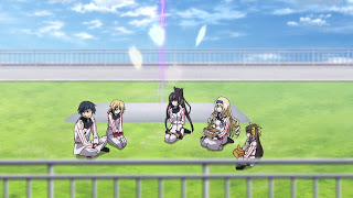 Along with Charles, Yamada-sensei (yes, another green-haired Yamada) gets in on the fun this week. She squares off against Rin and Cecilia in a practice match, and thoroughly kicks their butts. This was apparently Orimura-nee’s way of teaching the kids some humility by showing them that even a clumsy, bespectacled sensei can whup them. But the most fun in the episode is watching all of the various suitors looking daggers at each other while trying to get Ichika to eat their bentos during the rooftop lunch. This is definitely a harem where the chasers – even the tsunderes – are pretty overt in their intentions. And Cecilia’s English cooking is still terrible. For me, that stereotype is a bit overrated – plenty of good food in England the times I visited – but it’s good for a laugh.