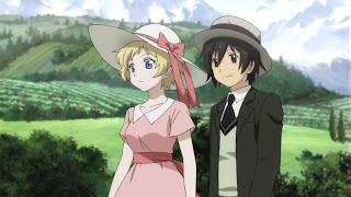 As for the episode, it’s more or less a return to the mystery of the moment format, but with a couple of twists. The initial part of the episode takes another stab at developing Avril as the third corner of a love triangle. As she drags Kujo around town on a date he doesn’t know is a date and frets about Victorique being better looking than she is, it couldn’t be more obvious that she has it bad for him. Problem is he has no idea – male lead syndrome, I suppose – and even more of a problem is that it’s clear his head is in the clouds with his library girl even when he’s physically with Avril. She’s cute, but she doesn’t stand a chance.