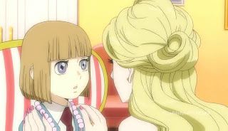 My favorite moment of the episode was when Tsukimi uttered the line that starts this review while cutting the fabric around Kuranosuke. She still doesn’t know he carried her to bed, and she still doesn’t appear to acknowledge overtly romantic thoughts about him. But she’s noticing Kura more and more – not just his physical beauty but his relentless determination to do what he thinks is right. Even Tsukimi and the Amars are caught up in Kura’s infectious enthusiasm this time – spending an all-nighter making Tsukimi’s vision of a Flower Hat Jelly dress come to life. Riding Tsukimi’s vision, Chieko’s mad sewing skills, Jiji’s… something, and Kura”s mother’s 3 million yen pearls they create something truly wondrous. And Kura looks truly beautiful wearing it.