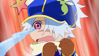 Animation-wise, they’ve decided to go with a sort of bright, Saturday-morning Mahou Shoujo look (and come to think of it, a Mahou Shounen starring Lag is kind of a great parody idea) that contrasts totally with the anime style. The premise features our four main bees being taught Tegami Bachi basics by an egomaniacal Dr. Thunderland, hoping to score a larger role in the main series. All the boys are pretty much themselves, only more – crybaby Lag, emo Gauche (no sign of Noir), tsundere (mostly tsun so far) Zazie and glutton Connor. So far, so good – you can only succeed in parodying yourself if you’re committed to it, and this humor in these 3-minute extras is fairly sharp. If you enjoy the series, you should certainly get a few chuckles out of them.