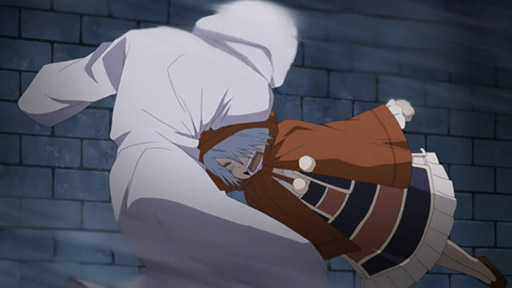 Well, we know now that Roda was one of the failed human experiments witnessed in Gauche’s heart memories. We also know that Lag has finally finished his letter to Gauche, and we know from the PV that Noir will make an appearance in the next episode. So it looks as if things are really heating up plot-wise – but Lag is all alone without Niche, and only Connor for backup – and he refuses to believe Roda capable of being a Reverse spy. Lag seems to be no match for Roda, never mind Noir – so it looks as if he’s in a lot of trouble. But while Roda appeared to try to kill him, I had the sense she held back – out of affection or pity, it’s hard to say. There’s also an evolved winged gaichu that Noir freed from the Maka’s ice cave, ready to wreak havoc, so the next ep promises to be full of significant events.