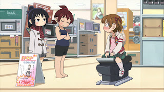 In a show that brings on the gags as fast and furious as this one does, inevitably not all of them will hit – and this episode was no exception to that rule. But most of them did, enough to make this a solid success as this series ranks. And the big laughs were really, really big (thanks, Chiba). There are many things I really love about this show, one of which is the fine attention to detail. Anything that happens is as likely to show up in a gag later as not, and no character is without humorous quirks. I liked how the ending of the first season slotted right into the start of this one, and how Ryuuta was quite naturally a part of the scene at the Sugisaki home (asleep on Mom’s lap) despite not being strictly needed for the joke. I loved how there was no effort whatsoever to explain why Chiba was wearing a fake nose and glasses. Those little details make all the difference and give real depth to the humor. I also loved the fact that Masahiko Ohta directed that great episode of Minami-ke, and I wonder if this kotatsu sketch was a bit of self-referential humor.