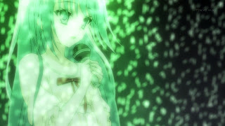 What we didn’t get, unfortunately, was any explanation as to why Yuu was suddenly able to talk last ep. In fact, what we saw was that the only way she was able to talk (well, sing) this time was by transferring her magic – first via Dai-sensei’s machine to Ayumu, than by Haruna’s magic hand-holding. Since there was no such precaution last time, one wonders why vast torrents of death weren’t unleashed. Plot hole? Well – whatever…