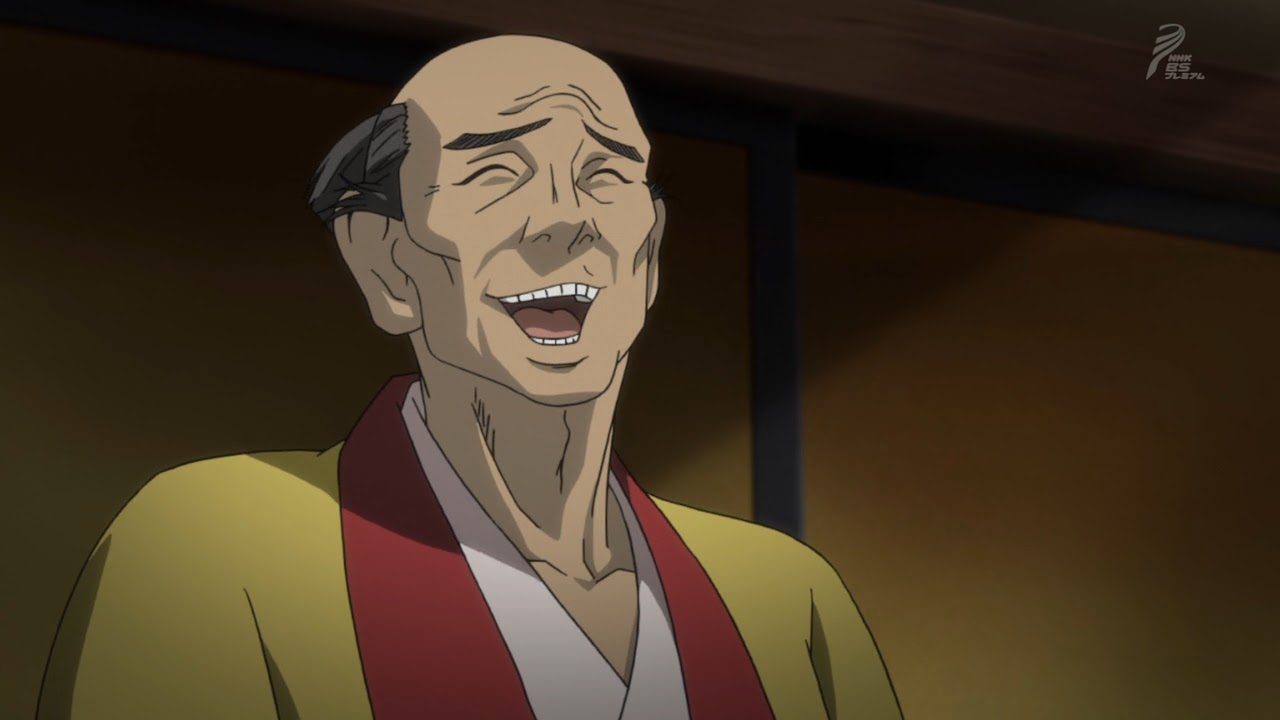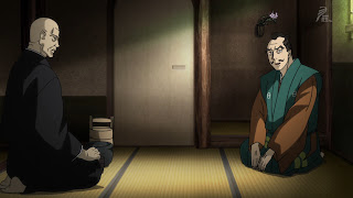 Damn, that was fascinating. We’re really being treated to a psychological tour-de-force here. Set in an era and social situation where men rarely spoke their true thoughts, so much of this series is about guys trying to figure out what other guys are really thinking – what they know and what they don’t. There were numerous examples in this episode, starting with the tea master Senna. In every one of these situations the players have something they want – in his case, it was the tea bowl Sasuke had procured by illicit means in the prior ep. Despite this being a capital offense, no doubt, he kept Sasuke’s secret in order to get his bowl back – just as Sasuke had spared the general’s life to get the bowl in the first place.