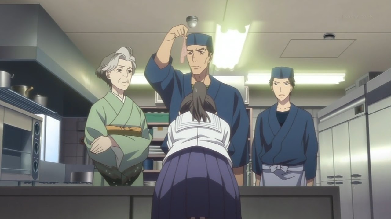Some have complained that the entire Tohru/Yuina thing was a misdirection on top of a misdirection – a misunderstanding about Tohru working at Fukuya, itself a misdirection as he was just helping out for the day. But I thought the situation presented itself quite plausibly, and it did wonders to advance several aspects of the plot. It also allowed the delightful Yuina to get some screen time – this week delivering her lines in a fake Hakata accent and lounging (oddly sensually) in her grandmother’s massage chair. She’s a great side character – so different from the rest of the cast. She’s light as a feather and seemingly unconcerned with anything whatsoever except enjoying herself, and she brightens any scene she’s in. As this is a show that can get a little heavy at times, that’s a good thing.