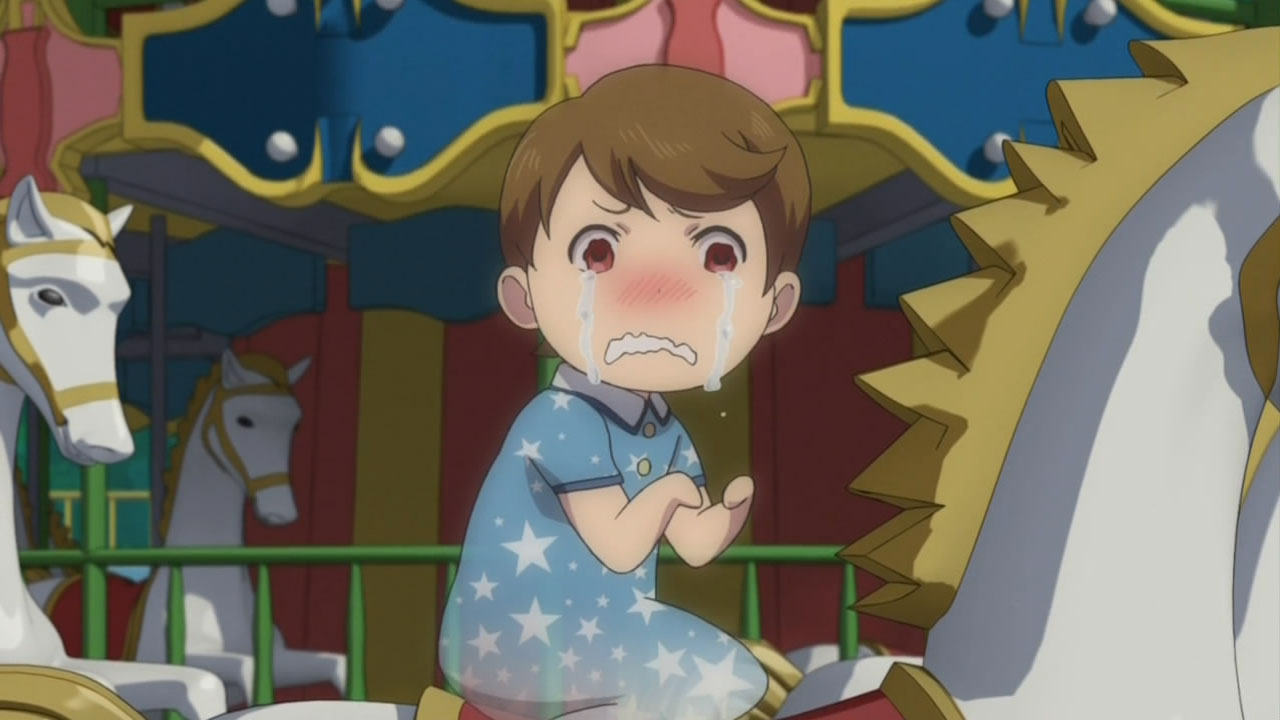 The mischievous ghost manages to get Shiemi one-on-one while Rin has other matters to attend to, and proves himself to be a pervy little fellow. After feeling her up, the ghost boy takes Shiemi for a dizzying ride on the teacups as Rin deals with problems of his own.