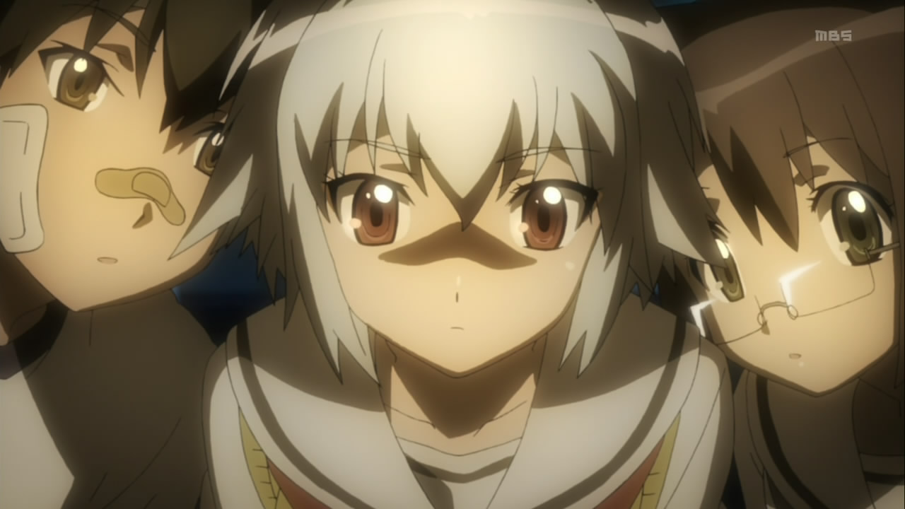 This is really a take of two characters for me. So far I’ve loved very scene with Aoi Yuuki’s Oshiroi. She’s delightfully weird and awkward, kinky and shy and ecchi (“It’s not that I’m not interested,but for starters just one person would be better.”). All the little squeaks and such that Aoi emits are spot-on – she may be the best in the business as non-linguistic voice acting. But then there’s Ume, who pretty much ruins every scene she’s in for me. She’s mean, unpleasant, cruel and utterly pointless. She’s by far the most clichéd and least interesting part of an otherwise pretty unique series. There may be an attempt to humanize her as the series progresses, but the character is beyond redemption for me at this point. The upside is that she might become slightly less annoying.