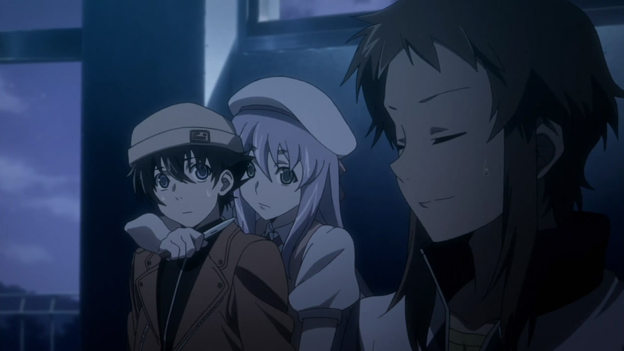 Gotten out of the way quickly was confirmation of what seemed obvious last week – the diary owner in silhouette was indeed Hinata’s father Tsukishima Karyuudo. He’s certainly a bit of a nutjob, a rich eccentric who walked out on his wife and daughter to devote all his time to his obsession with dogs. His “Breeder Diary” gives him the ability to see what his dogs see, and to give them orders as if they were human soldiers (really, it’s better not to ask). We don’t get a lot of exposition but my sense is that Tenth has more or less given up on the game by the time he joins the cast, and the gambit involving Hinata and Akise was pretty much a Hail Mary pass – and one based on a faulty assumption at that.