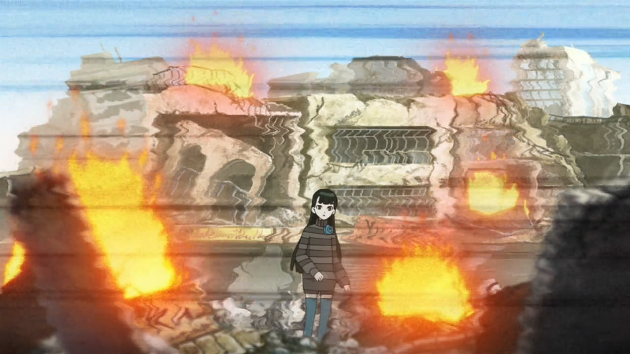 If you have the time, it’d certainly be an interesting experience to re-watch episode 7 in light of everything we were told today. It was especially fascinating to look back on the interpretations each of the three “actresses” (Toyosaki Aki, Takagaki Ayahi, Kotobuki Minako) took from the “We should’ve sucked off war more” dialogue last week, each a reflection of their real-life crimes – prostitute, propagandist, mother-turned-terrorist. As I surmised it was indeed The Novelist’s sidekick that Inga smelled last week, and now we know who she is – Bettneou, a black-eyed Kami that has the ability to change others’ perception of their reality. Whether she works for The Novelist or vice-versa is hard to say and we don’t know how they met, but this was certainly always the most logical explanation for what happened at the prison. There were other clues – the Frank Darabont films the “director” was looking at, for example – and some were quite subtle, like the missing number on the director’s keypad and the fact that Shinjuro appeared to be leaning on non-existent walls and such at times. The whole exercise was not just a play for The Novelist’s benefit, but a scam on the part of a prison guard to ensure the silence of a female prisoner who knew things he didn’t want to get out.
