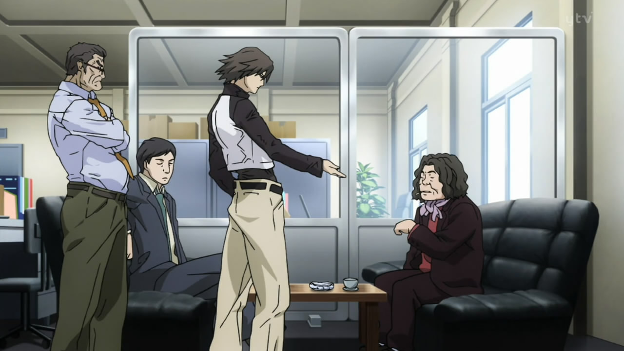 In spite of that, the superstructure of the story is still pretty apparent, and I guess this is just about the only way to try and adapt a huge manga into 12 episodes and give it a real ending. Jin appears to have a love interest at last (which was inevitable) in Tanaka Hanako (Ise Mariya), who stumbles on the latest act of murder by a Player gone wild, this time the one Inspector Sayama is calling “The Sand Monster”. Hanako looks more than a bit like a young Akemi to my eye (though that could just be Katsura’s character designs) and seems like a genki type, and smart enough to sense that Jin is her best chance at protection in this mess she’s gotten herself into. And indeed, it’s in his saving her from the Sand Monster that he draws the attention of The Sweeper onto himself, with unknown consequences.