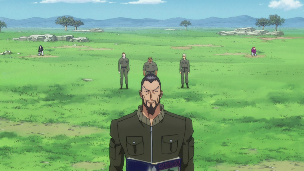 This is my favorite part of the episode, because as always it’s fascinating to watch Killua and Gon go about their business in such diametrically opposed ways. For Killua the meeting represents both a danger and an opportunity, and he immediately butts heads with another team leader, Asta, who dismisses he and his allies as a bunch of useless kids. Killua trusts no one he doesn’t know intimately (and even then, usually with caution) and he’s a brilliant strategist, as he shows us over and over. For him this is immediately a negotiation – they have info the others need to know and he’s certainly not willing to let Asta’s team have it without a significant cost (for the others, he’s willing to go so far as to accept whatever they offer after the fact). For Gon it’s the completely opposite approach – once the true nature of Genthru has been revealed and the others realize they may have become his victims too (after he’s touched them) Gon spills the rest of the information about his abilities, whereas Killua was ready to extract his pound of flesh in exchange.