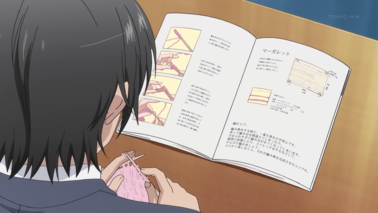 Enzo, you are very kind — I don't appreciate Hayami's prank on Hosaka. He's a pretty naive — if not stupid — but innocent classmate of hers. I just find that playing with people's emotions is mean to begin with. I am happy to see that Hosaka went off track this week from knitting to worshiping and didn't finish the scarf that Hayami tricked him into knitting.