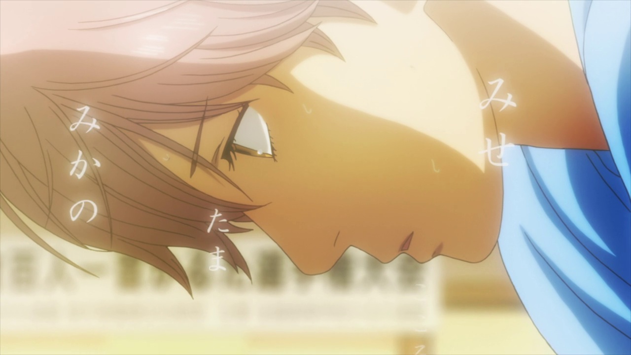 I love the scene wherein Taichi unfolds Chihaya's clenched fists. That was a really sweet gesture. It says so much. One of things that conveyed was how Chihaya does not have to torment herself for her lost. He understands how hard she is on herself, because he's also like that with himself. It also showed how much he cares about her since he's always watching out for her. I love Taichi as a character but as a potential love pair, I always believed Arata had the upper hand. For the first time, I felt Taichi really stepped out. It's in those moments where he only focuses on Chihaya where he shines. It's nice to see jealously in his face for once this season.