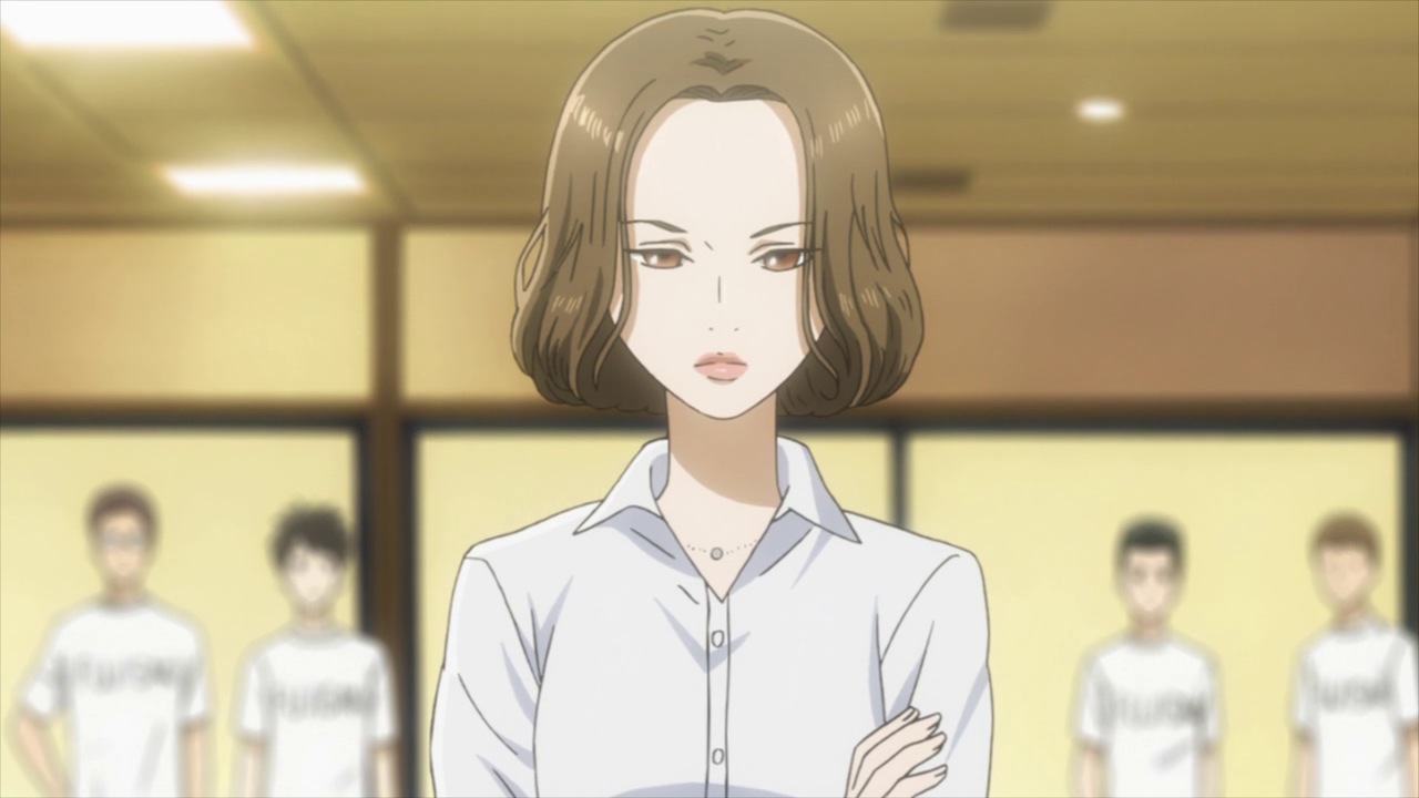 Then, there’s Fujisaki.  Their coach Sakurazawa-sensei, is a seemingly ice-cold hard-ass who thinks nothing of taking out one of the third-years for the final because she’s more concerned with grooming the team for the future than a match she’s sure she’ll win easily.  The second-year inserted into the lineup is Yamashiro Rion (granddaughter of Yamashiro Kyouko), who seems as emotionless as her coach – and whose presence in the final is deeply resented by Yamai Makoto (Saiga Mitsuki), the third-year rival for Taichi’s eyelash supremacy who may be in love with her.  Nishida’s opponent is Suzuki Kanata, desperate to avenge his benched brother (Nishida, meanwhile, is desperate to avenge himself).  Sacrificial lamb Tsukuba’s rival is fellow fox-creature Ichimura Mitsuki, and Tsutomu is up against Makoto.