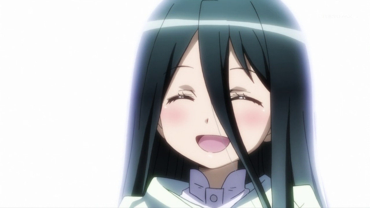 So in this episode we met a double-patricide and a pedophile, and those are the good guys – not to mention that the chief protagonist himself is a boy who seems fated to become a serial killer himself. Kiri’s role, Sumeragi tells him, is to look after Iwai and make sure none of the Authors looking to free themselves from the curse gets her – and it looks as if he’ll be getting some practice in the next episode. In the act of cutting Iwai’s hair (which grows back overnight) she can act as his Instead and stave off his madness for a while, in theory anyway. You don’t get plots much darker than that, yet in spite of all of it there remains something powerful and poignant about Kiri and Iwai’s relationship. His commitment to her and her adoration of him seem so genuine and utterly different from the shallow and cliched relationships at the center of most anime that in spite of all the darkness surrounding them, their scenes together are somehow warm and hopeful.