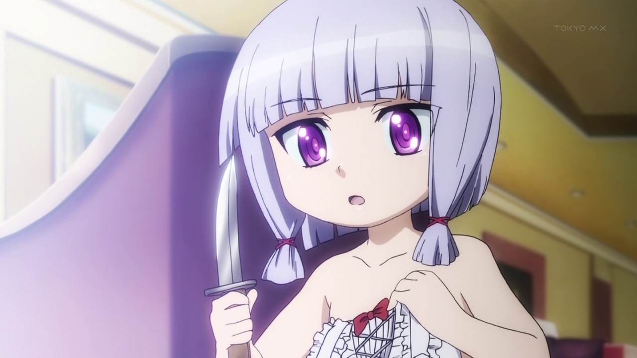 We don’t get an explanation behind that for now – the Gossip party is surely relevant in some way – but we do get a new player in the game, and that’s Emily Redhands (Hidaka Rina, making quite the career out of playing tiny little girls). By all accounts Emily is about 10 years old, but she’s an Author – possessed of the Killing Goods “Opener of Blood Dissection”. She apparently inherited them from her Papa, who’s quite clearly dead – and she brags that she doesn’t have an Instead but rather works as a “professional killer”. She has connections to Violet Witchie – we see them together at the end of the episode – but her interest in killing Iwai seems very personal, and very much connected to her father.