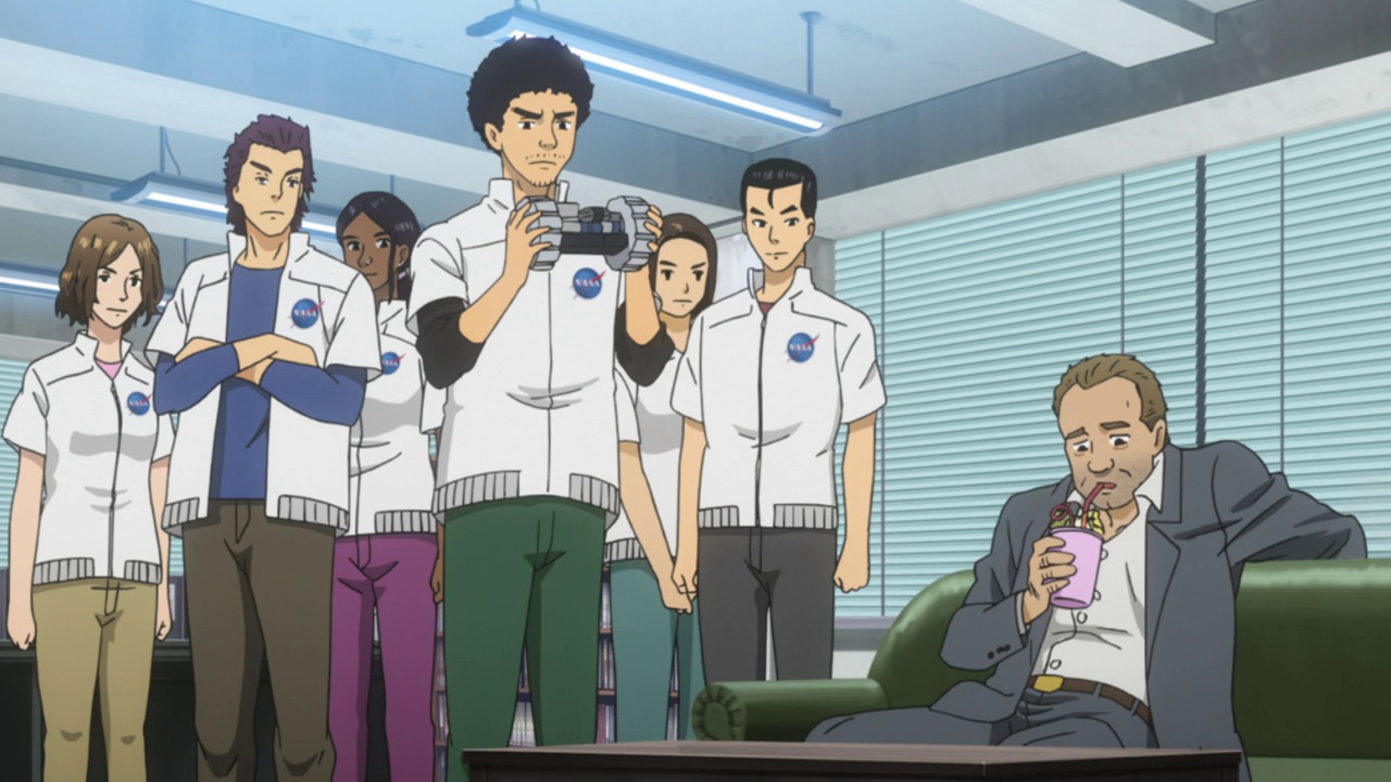 A 60-episode prologue, in an era when most anime are 1/5 that long in total? Yeah, an awful lot has happened (though no one will ever accuse Uchuu Kyoudai of being fast-paced) but I think a strong case can be made that all of it has been setup for the real story – that is, if you believe this is ultimately Mutta’s personal story. The childhood flashbacks, the training sequences, the systematic exploration of Nasuda’s “Hito” analogy and the people that make it happen, Hibito’s trip to the moon – all of it is stage-setting for Mutta’s own journey into space, helping us understand both what drives him and the practicalities of the dream he’s chosen to pursue.