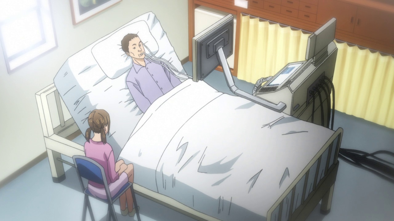 Back when Sharon’s illness first became a factor, I speculated that ALS seemed like the most likely culprit – both based on her symptoms and the fact that it seemed to fit the demise of Serika’s father the best, and I figured they’d try and link those two elements together. I think this plotline works much better now that the disease has been named – it makes the notion of an unlikely coincidence seem less of a problem, and it defines the true tragedy of the situation in a way that makes it easier for the audience to understand. This is a terrible disease, indeed – in America we know it as “Lou Gehrig’s Disease” for the famed baseball player felled by it, but most of the world knows it because of Dr. Stephen Hawking. Hawking has lived with ALS for an extraordinarily long time – no doubt partly because of the state-of-the-art technology at his disposal to help him do so – and remained a vibrant intellect even as his body has become a prison. That’s the curse and the blessing of ALS – the mind remains strong, fully able to comprehend everything that’s happening to the body.