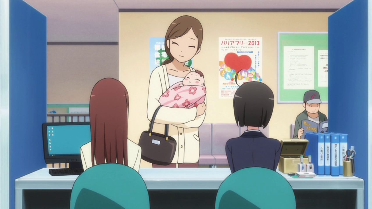 I didn’t recognize Sakurai-san, which I would have thought was impossible – he does a great job sliding into the role of meek middle manager here. One of the great things about the premiere is how many of the well-known cast are playing against type – Nakahara Mai without a hint of snark or irony, Kayanao Ai with a hair-trigger rage button and strung more tightly than a Stradivarius – this sort of stretch performance is interesting to listen to. Another crucial element to why this works is that all of these character types are spot-on – anyone who’s worked in an office, never mind a local government office, knows people like these. And the fact is that people who have natural charm like Hakebe can succeed with ease where others fail by grinding like crazy – it’s an irritating fact of life. The gift of smoothing things over with customers is very difficult to teach, but with some it’s simply innate.