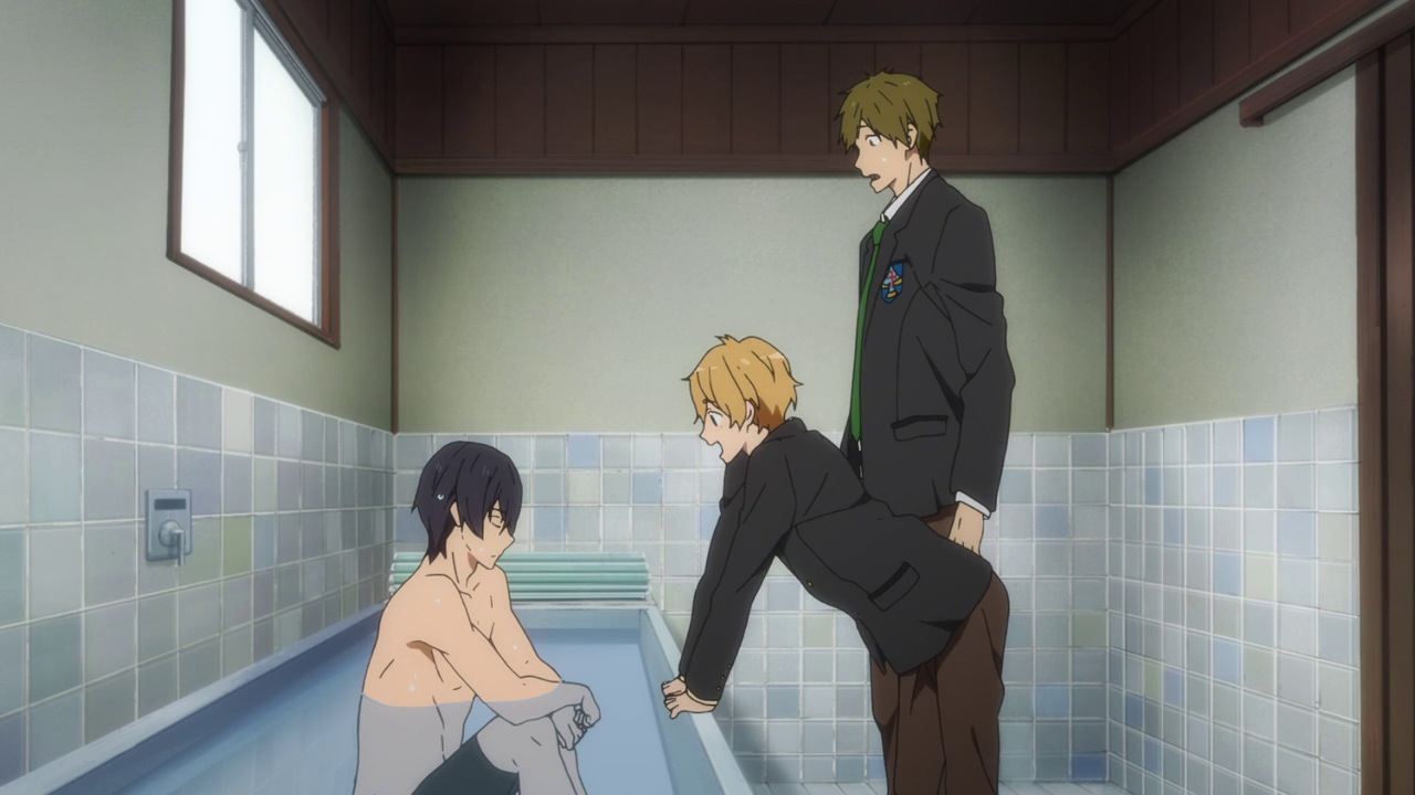 I was watching this and couldnt place place my finger on what irked me so much. 'Contrived' was the word, thank you Enzo. All of the gags ('THE TRICEPS'), the tropes, the predictable niches, oh-so familiar shounen situations and monotonous dialogue makes it feel like 'Free!'s sole purpose is to push across a couple fanservice shots, which would mask the subpar writing and out of place jokes and quirks. I felt like I couldve taken a stab in the dark at guessing the plot after watching episode 1 and probably would have come close to what we saw in episode 2.
