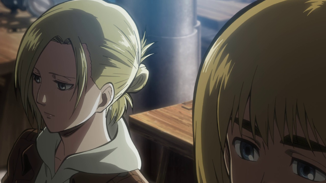As such, it’s not surprising that the episodes where Jean is given a lot to do (there haven’t been many lately) feel quite different than the rest of the series. It sounds funny to say about a series where the biggest problem was that nothing of consequence happened for about 8 eps, but it’s nice to see AoT take a breather every once in a while. The issue isn’t that nothing was happening during most of the endless “Trost” loop, but that none of it really mattered. The eps were loud, bombastic and violent – and generally changed nothing of importance. Meanwhile the occasional episodes like this one, last week’s and the flashback to Eren’s meeting with Mikasa actually featured mostly people talking to each other in indoor voices, and moved the story forward significantly. That’s two in a row now – hopefully a precursor that the rest of the series is going to feature action that actually matters, and not just to fill time.