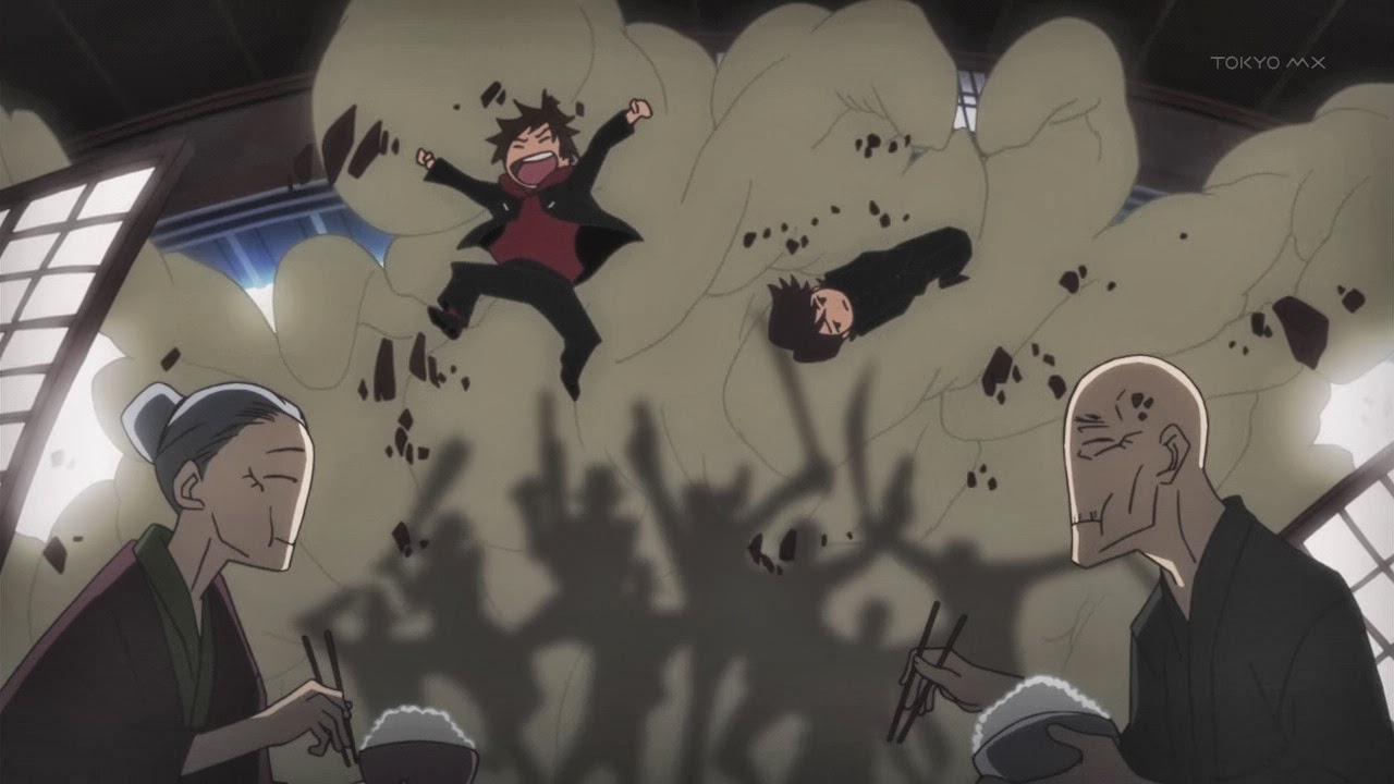 October 3, 2013 at 12:19 pmYeah that was… that was worth it. That was just fun, just really fucking fun. No idea what was going on but it was fun, made me feel like a kid not a cynical adult. Yeah I think GE will find this more than a nightmare to blog simply because the words to describe it don't exist in modern English or any other language. I'd rank the first three premiers as Kyousogiga>Coppelion>Kyoukai no Kanata but overall it was a nice first foray into Fall.