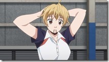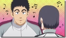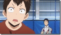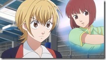 The contrast between Nat-chan and Maruo has been a part of Baby Steps from the beginning, of course, but it’s nice to see it explored head-on in this fashion. Nat-chan’s unpredictable style exposes a flaw in Maruo’s analytical approach (it’s grounded in the same reason professional poker players often hate playing amateurs who aren’t versed in the “proper” strategy). And for Nat-chan, playing against someone like Maruo helps her develop a different sort of self-awareness than she usually possesses – she sees her game through his eyes, and it surprises her. Maruo does win 6-1, but there’s no falling out as a result – Nat-chan understands that there’s a power gap here that’s impossible for her to overcome. These two are comfortable enough with each other to get past something like this, and it serves its training purpose. Certainly it’s a gamble to pit two teenagers in-love with each other against each other on the court, but it seems these coaches know their students well.