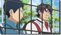 Araya is a tough nut – big and fast, an attacking baseliner and a devastating topspin forehand. Physically he has no real weaknesses – it was his mental frailties that Ei-chan attacked the last time, and managed to keep the match close (for a while) in doing so. He’s improved, but this match points up another flaw with Ei-chan’s laser-like analysis and exposure of weaknesses – when he has to play the guy a second time, there’s a good chance he’s learned from what Ei-chan exposed the first time they played. That’s why I said if I were a top player in Kanto Ei-chan is exactly who I’d want to play, because if you’re willing to learn and swallow your pride, there’s no better way to find out what you need to work on. Araya is no fool, and he has a very good memory. The stage is set for the biggest match of Baby Steps so far.