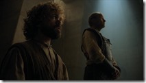 The towering crescendo of the episode was was the final set piece, of course, but I have to start – though the episode didn’t – in Meereen. Yes, the long-awaited meeting between Tyrion and Danerys has finally taken place. And for the first time in either GoT or ASoIaF, I truly sensed that Dany’s plotline was connected to the rest of the story. I’ve been waiting five seasons and five books to have a reason not to groan whenever the narrative goes to Dany, and now I finally have one, and his name is Tyrion.