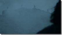This is heady, great stuff – some of the Willding elders like Karsi (Birgitte Hjort Sørensen) are willing to trust Tormund enough to betray their ancestors, but others (like the Thenns, natch) are not. I love Tormund but he’s never taken off the way he did in the books, despite fine casting – but this was his coming-out party. From the moment he smashes the King of Bones into mulch he’s on it – taking charge of the council, turning into a veritable tornado when all hell breaks loose afterwards. And does it ever – the army of the dead arrives just as Jon’s party is ferrying the Wildlings out to the ships, agonzingly slowly. It’s a fantastic scene, starting from the dogs going crazy and the mists rolling in over the mountains. It’s beautiful in a terrible way, one of the finest set pieces the series has done (which makes it one of the finest TV has ever done).
