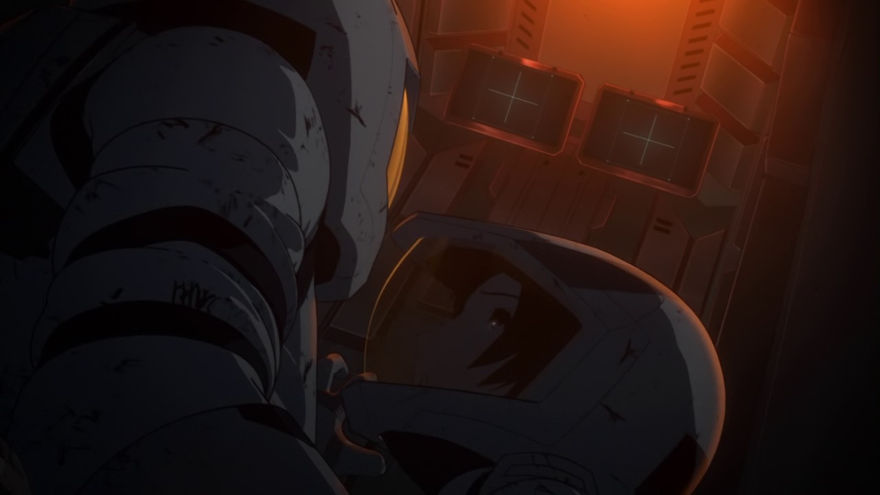 Hoshijiro is a big part of all this, no question. She/it was arguably the main MacGuffin of the first season, but Tsumugi has usurped that role this time – until now. Hoshijiro is back in the picture in a big way, and the scene where the “human” version invaded Nagate’s cockpit was admirably creepy and surreal. That “kiss” was especially striking – enough to make you wonder just how much of the human memories (and impulses) still live inside the placental copy, and just what was driving those actions when all was said and done.