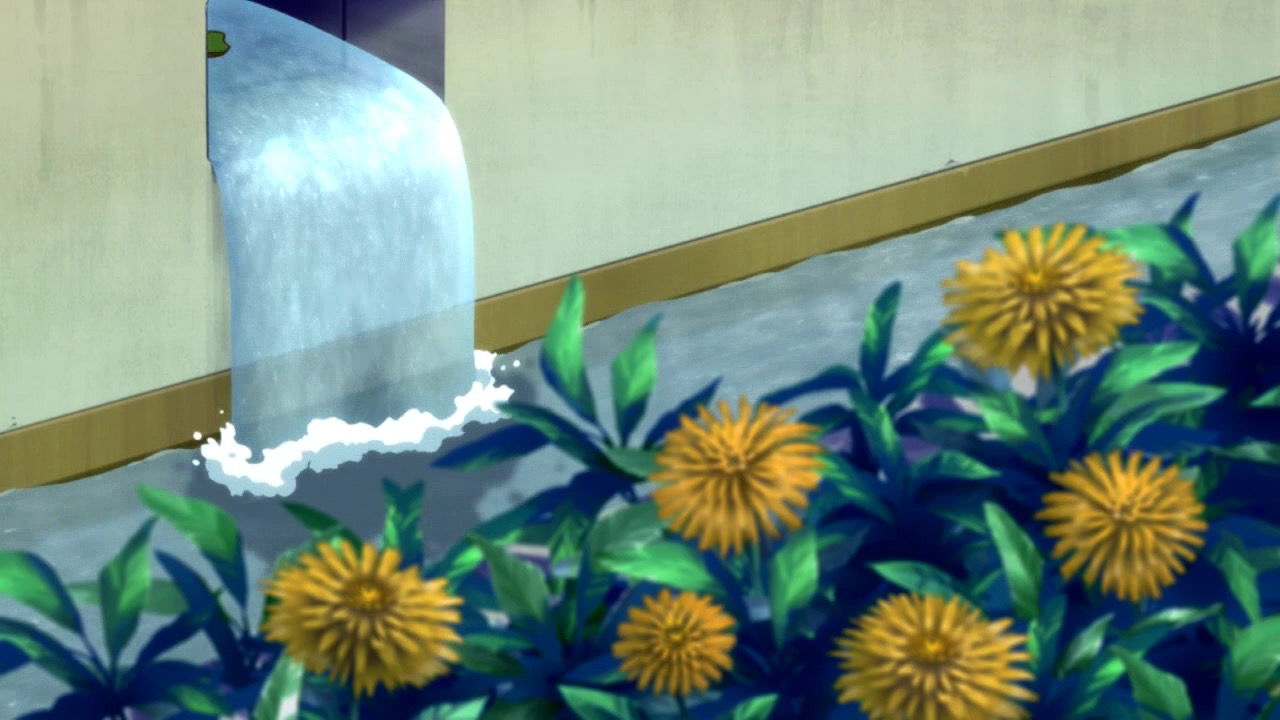 Shirayuki and Ryuu have a brief meeting in the garden before the exam, where she picks up a nugget of useful information about harvesting herbs at the right time of day to ensure maximum efficacy before he becomes a bit overwhelmed by her presence and flees. It’s Ryuu who’s devised the unspoken part of the exam, having planted a “Yura Shigure” flower incorrectly, causing it to leach toxins into the irrigation water supplying the surrounding herbs. The idea is for the candidates to spot it and make note of it, but Shirayuki does this one better – she actually replants the Yura properly and all the surrounding plants too, and drafts Zen (who’s come to surreptitiously spy on her) into helping.