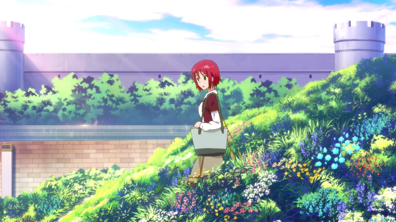 Shirayuki is, of course, trying to become an apprentice court herbalist herself, and this week finds her taking the exam. I love anything to do with this subject in Akagami, because I’m nuts for the art style and the depiction of the gloriously colorful herb gardens is the perfect canvas for the series to offer up Impressionist masterpieces (which are perfectly complimented by the music). The Chief Herbalist is Garak (Kaida Yuuko), and she’s keenly aware of how Shirayuki’s connection to Zen could allow her to bypass the examination process altogether if she desired. But Zen is just as keenly aware that Shirayuki would never allow that. The question is really whether Shirayuki is naive enough to believe that in the end, that connection can actually have no impact – clearly it does, though just as clearly Shirayuki earns her way into the position.