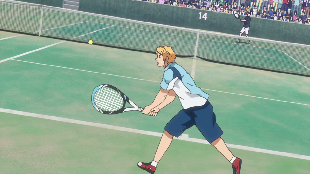 At long last, Himeko-san finally breaks through the impenetrable wall of Japanese stoicism and screams out her support for Ei-chan (though it had to be bittersweet for her, given the “Is she Maruo’s girlfriend?” shout from the crowd), and Kageyama tentatively follows suit. It’s too late to save the second set, and the third set is Ide-kun’s comfort zone, but there are other faces Ei-chan knows in this crowd – Nabae has arrived, laptop in-hand, and Nat-chan seems not far behind him. Ultimately, whatever Ide says, tennis is about the two players on the court – and it’s Ei-chan’s job to reduce the match down to what really matters and apply his unique skill set to solving the puzzle that’s facing him from across the net.