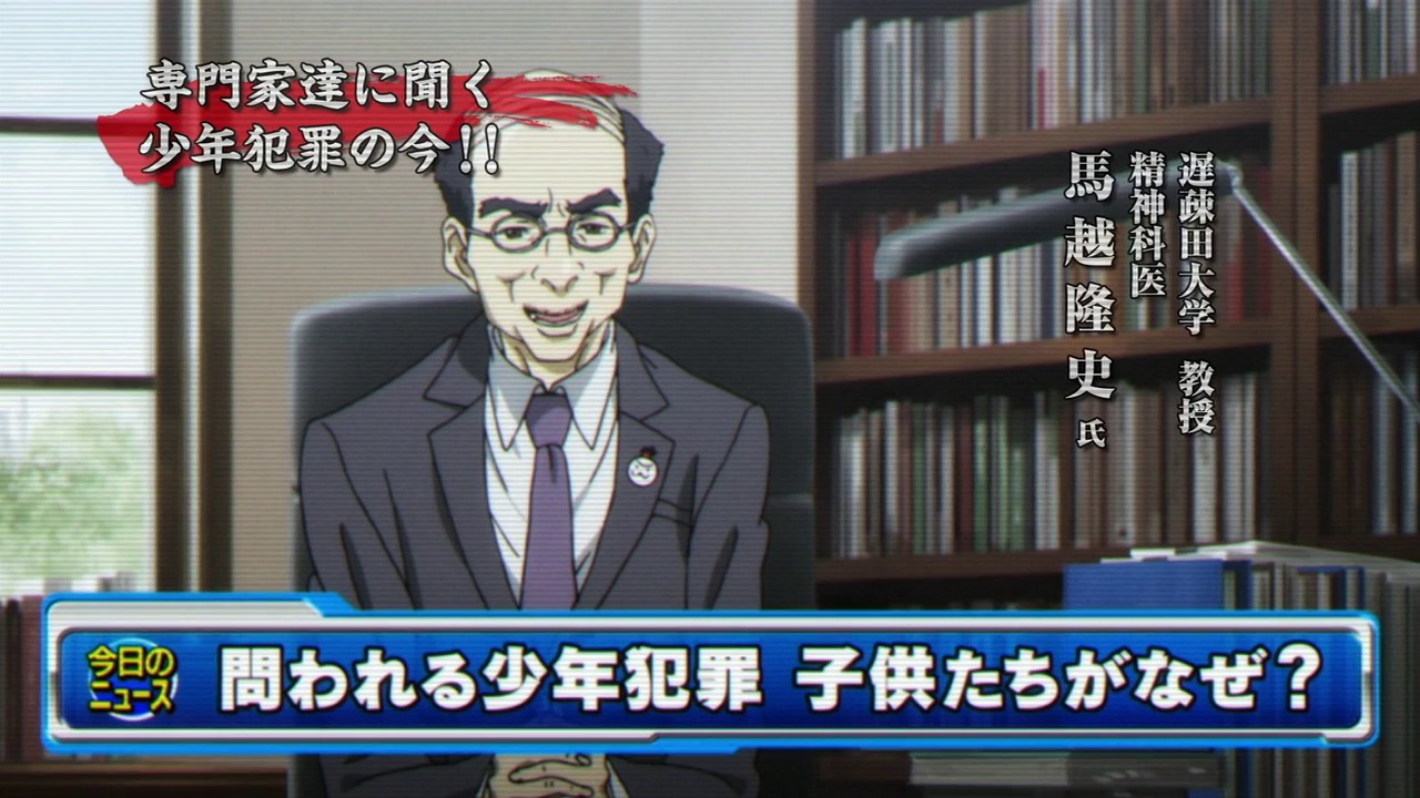 It’s no small merit that Ranpo Kitan is if nothing else thoroughly not generic, and absolutely not boring. But both the resolution of the “human chair” murder case and the means used to exposit it were way, way out there. I mean, you had stuff like the comic autopsy (which may be the first slapstick autopsy I’ve ever seen) which featured a hilarious Kappei Yamaguchi as Shitai-kun (“Corpsey”). Yamaguchi also featured as an “expert” talking about “game brain” in the equally hilarious TV news segment which preceded the autopsy, which ruthlessly skewered extremists on both sides of the juvenile violent crime before turning on the apathetic and ill-informed Japanese public with a brief stop on the upcoming VAT (Value Added Tax) increase.