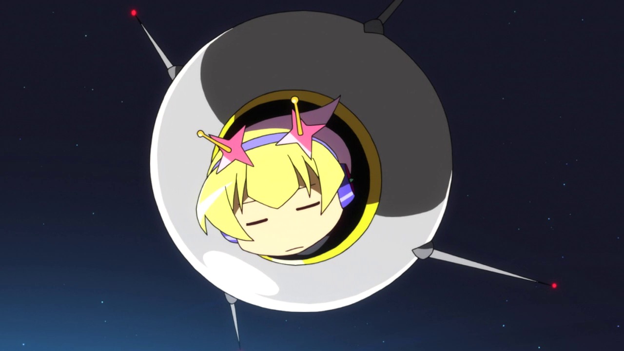 There’s one more message Aikawa and Mizushima seem to be pressing home here, and it’s this: whatever good and evil are, truth is not necessarily good and lies are not necessarily evil. Kikko gives Earth-chan candies and tells her they “allow machines to dream”. Later, she admits what they really are is “lies” – but sometimes, lies are needed. When Earth-chan dreams what she dreams of is a lie – a false reality where rather than a lonely satellite floating in the cold of space, she’s a normal human girl with a family. But lie or not, she smiles when she sees that reality – and it’s the lie that allows her to grit her teeth and endure her truth, because she can go back to that lie when the truth becomes too much to bear. As I said, a crazy sort of brilliance – and there’s something powerfully true in that depiction of a lie.