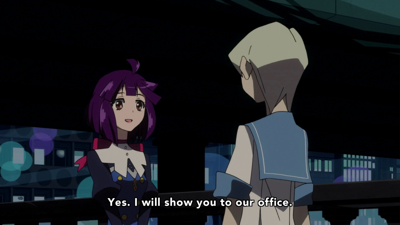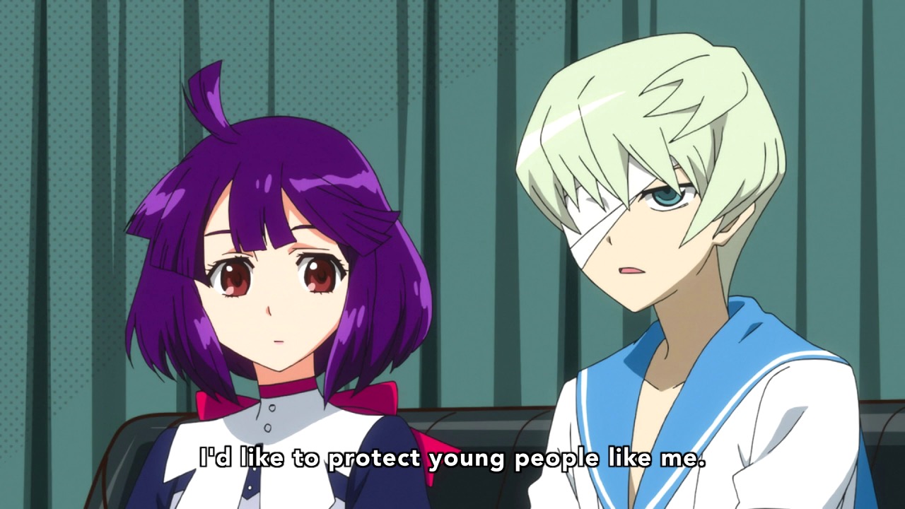 To illustrate that point, Aikawa and Mizushima give us the story of Earth-chan (Taketatsu Ayana), who we’ve briefly met before, and Judas (Tachibana Shinnosuke) who we have not. Adding to the seemingly endless list of tropes in this series (next week we’re getting the boy detectives “BL Clan”) Earth-chan is a satellite – a robot created by someone who picks up on the distress signals of humans in trouble, and comes to their rescue (seemingly getting something like an endorphin rush in the process). As for Judas, he’s a boy who was part of a gang of master crooks called the “Diamond Eaters” who now says he wants to go straight and join the Superhuman Bureau.