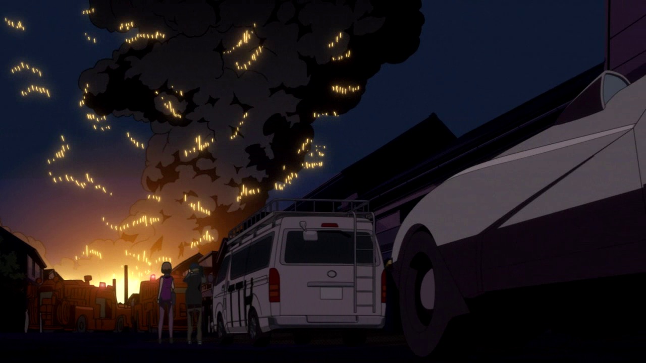 The other crucial component of this storyline are the Morino clan.  They’re clearly not “simply” superhuman – their ability transcends the capacity of any of the Bureau to understand it.  Are they aliens?  Gods?  We never get an explanation, but it’s quite clear that they simply wish to be left alone to exist in peace – “incapable of hurting others, incapable of being hurt”.  I don’t know if that’s literally true, but they do take it upon themselves to “die” in order for the giant robot the Americans have sent after them to self-destruct, its mission complete.  But not even the molecular disintegration weapon the robot unleashes on them can kill the Minoru – they outlive their executioner and disappear into the shadows (until the second cour, anyway).