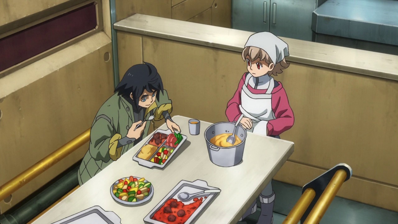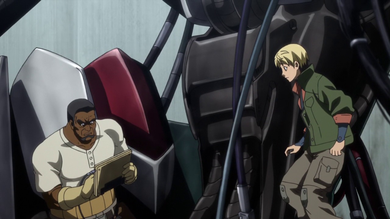 We’ll see if this low-key approach continues – it seems very likely we’re going to see some serious tragedy before the series is over – but for now, it’s carrying the series nicely.  The new player entering into the mix is Houki Katsuhisa’s Maruba Arkay (there are times I think Gundam names its villains after IKEA furniture), the president of CGS whom we briefly met in the premiere.  But for me the most interesting antagonist remains McGillis Fareed – he doesn’t waste time on needless cruelty or grudges, avoids meaningless posturing and generally seems inclined to think everything through clearly before he acts.  There haven’t been many chess players in Gundam over the years, but Fareed definitely seems like one to me.