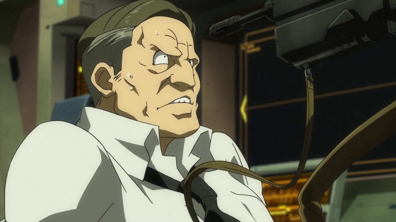 Are we to take a ship’s captain with a self-described harem (who do all his fighting for him) as an admirable man – and that ship for a model environment? It’s not exactly what you’d call enlightened, but there’s no denying that it’s over the topic of family that Naze and Orga find some common ground. It’s also worth remembering that Turbine is effectively a mafioso, though in this context that doesn’t mean exactly the same thing that it does in our world. Naze has a scoundrel’s honor, in his way, and he’s more than smart enough to see that Orga and his boys are far more worthwhile (and useful) allies than Arkay. But he’s still not someone to be trusted (or admired).
