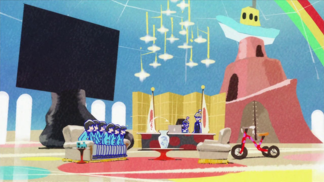 Osomatsu-san is mostly being ignored by Western fans, but it’s sure making a splash in its homeland. It’s even been the the news several times, as a ridiculous controversy has arisen over some of the parodies in the first and third episodes (we can only hope the Tolkien estate wasn’t tuned in tonight – as if), forcing changes to the Blu-ray releases and an apology from the director. Some people can’t take a joke, apparently – but if you can’t take a joke, this really isn’t the sort of show you should be watching.