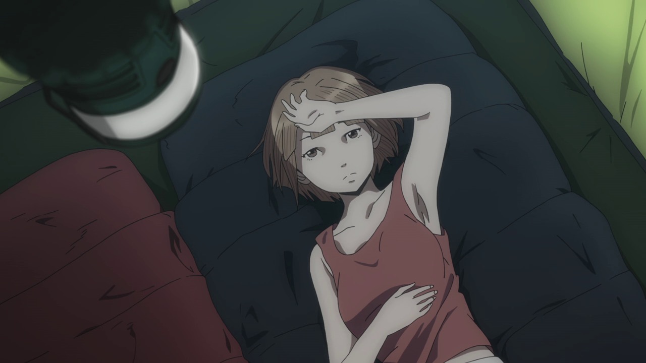 The episode’s big wake-up call comes when it segues – with no preamble whatsoever – from that observation into a truly terrifying flashback to the night when Shiki’s parents died. This is seriously creepy stuff here, shot in very matter of fact fashion without the crutch of an intrusive soundtrack. The event in question was even more brutal than it’s already been described – Shiki and her uncle killing her parents together, ruthlessly, and her aunt walking in just as they were finishing the job. This tells us a lot – not least that Shiki took the fall for her uncle (though she certainly was the instigator), perhaps in the knowledge that as a minor she would be treated far more leniently by the legal system.