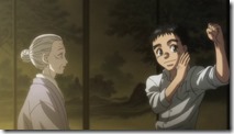 That’s especially true once Mikado has had the chance to meet Ushio, and their scene together – the impossibly old woman who gave up her own children to the fight against Hakumen no Mono and the boy who gave up his mother to the same fight – is one of the best in the episode. For all his strength and indomitable spirit Ushio has a purity and innocence about him (sound familiar?), and he wears his heart on his sleeve. And while Mikado insists that Ushio’s mother is “much nicer” than she is, she comes off as a pretty noble spirit herself.