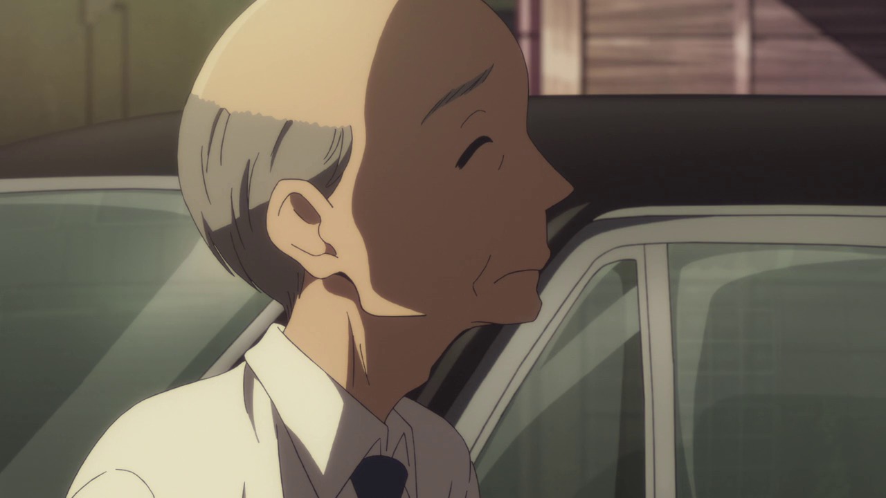 Really, this is just wonderful stuff. The cast of iconic seiyuu is superb, especially Seki (who reminds us that AssClass would have been better if it’d kept its original cast). Director Omata (sometimes known as Hatakeyama Mamoru) reminds us what a stellar talent he is, and what’s possible when a director of his ability escapes from Shaft and Shinbou. Some of the best moments of the premiere are when it absorbs itself in telling entire Rakugo tales for minutes at a time – both told by Yakumo and Yotarou. Omata gives us fleeting glimpses of what’s happening in the story, because of course this is what the storyteller himself has to do. He also gives us glimpses into the past, glimpses which will clearly become lingering stares next week.