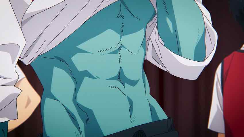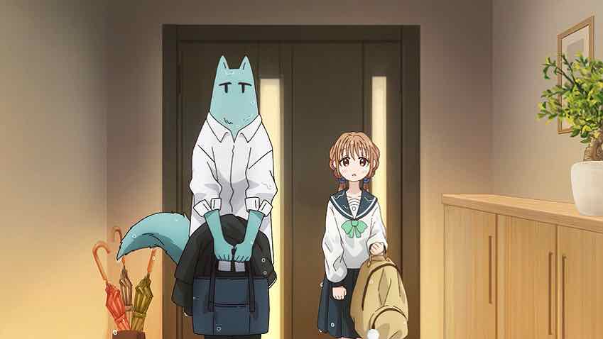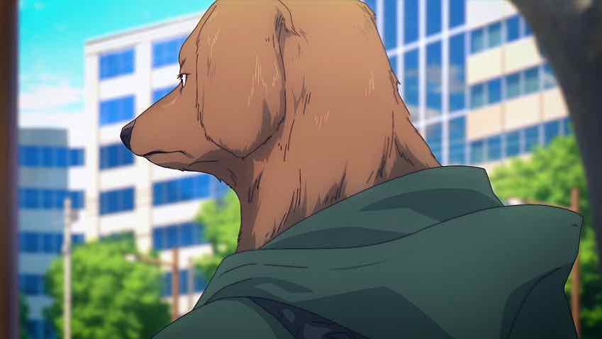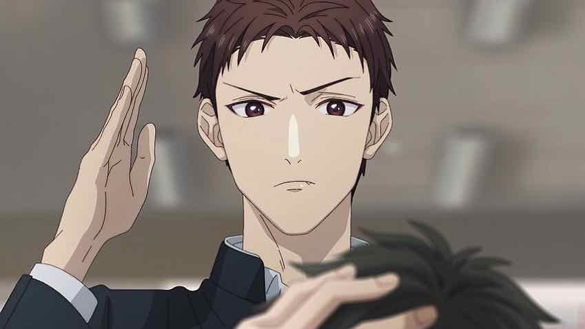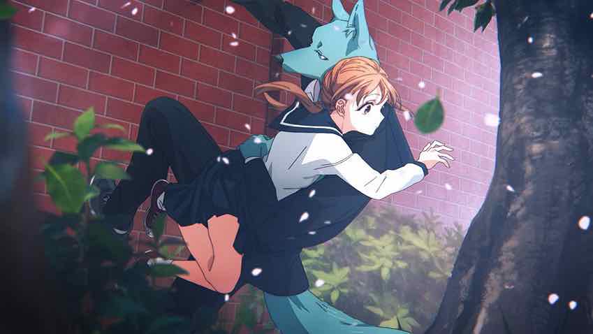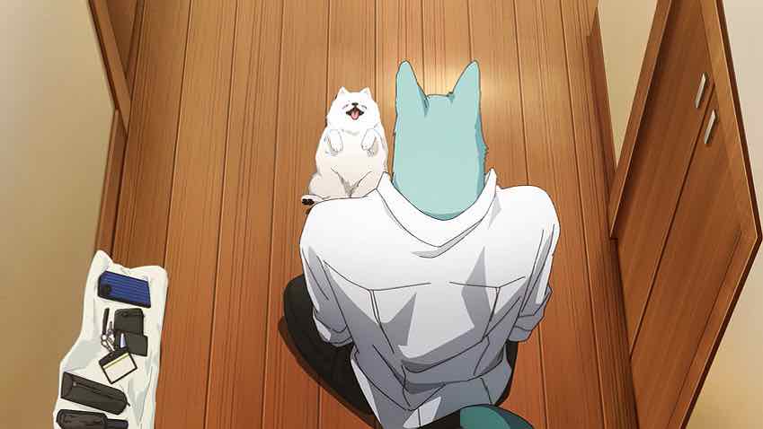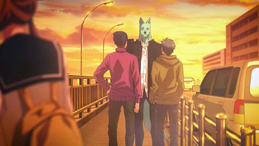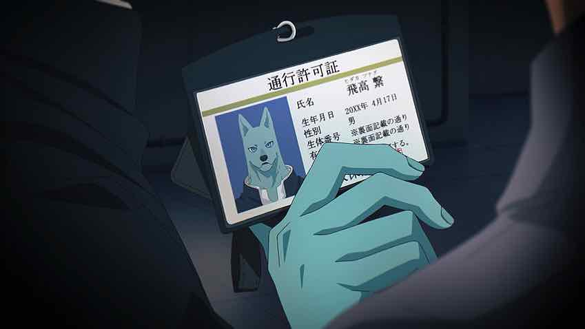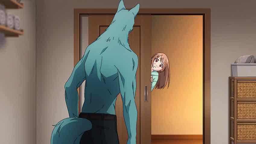 This info comes courtesy of a classic exposition by explanation cold open, which as LiA readers will know is a pet peeve of mine. That’s hardly an encouraging start, and generally speaking this premiere took a while to click for me. But it did, eventually. The themes of discrimination are painted in pretty broad strokes, but I quite liked the dynamic between Mari and male lead Hidaka Tsunagu (Eguchi Takuya). He is, as you’d guess, a beastman – in his case, visually a cross between human and dog (the OP/ED tell us there are other variants as well). He and Mari first interact when she’s jumping the school wall after arriving late, and he’s debating whether he can face a human school at all.