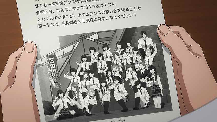The other major player is Hikari Wanda (Yomiya Hina). Yomiya – Anna from BokuYaba and Osanai from Shoushimin Series – is a non-cookie cutter seiyuu and I appreciate that about her. Wanda loves dancing too, and has real moves, but has never danced with a group. She’s also not particularly good with words and doesn’t judge Kabo for his stutter (or laugh at his dance moves). The main conflict driver of the first episode comes when one of Kabo’s buddies, Takumi, secretly films Wanda dancing as she watches her reflection – getting a panty shot in the process.