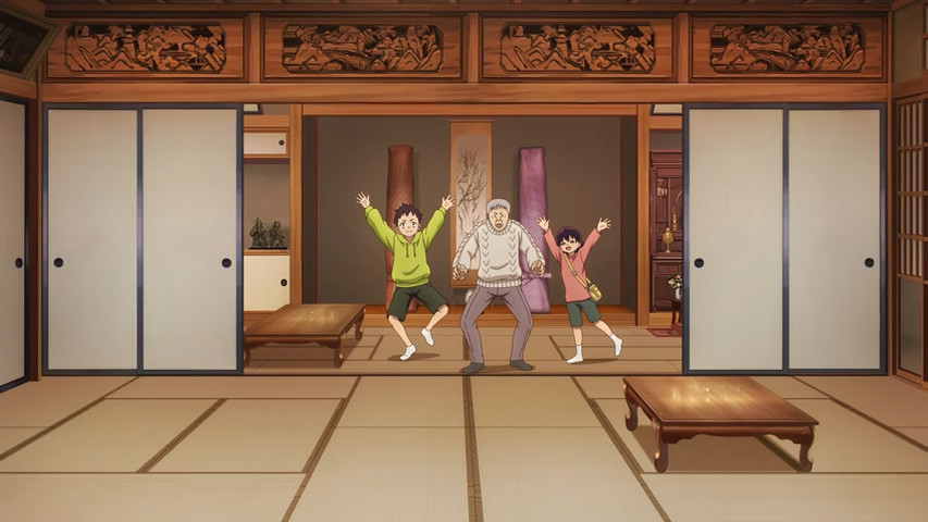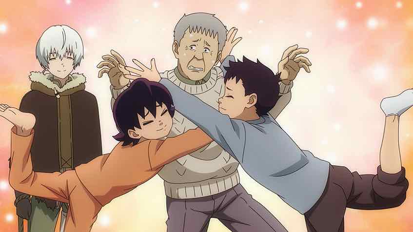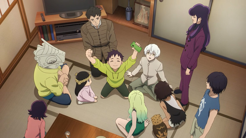 Pretty much all the main players are here. Bon is a critical one, since his descendants have been preparing for his return in the form of the “Tasty Peach Society”. The TPS has a lot of dosh and acts as a coordinator to get the old gang together and reunite them with Fushi. But what to do with all of them? Yuuki’s grandpa naturally isn’t keen on the idea of “about eight more people and two animals” joining the menagerie at his little house, even after Fushi offers to build more rooms. All the big names are here, including of course Gugu and March (who the Peaches collected from her new fam). Some are more welcome than others (I really don’t need Tonari back in my anime life) but that’s symbolic of the bargain watching Fumetsu demands from you.