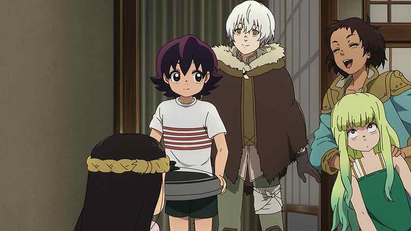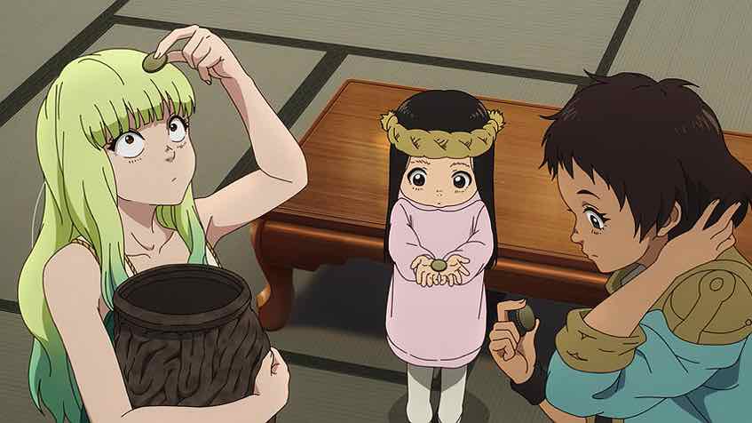 Aiko also scolds Fushi for making money our of the air, on the grounds that it will devalue the local currency (and the Yen certainly doesn’t need any help there). Fushi invites Mizuha over for a visit, and of course most of Team Fushi realizes immediately who she’s related to. Bon arrives back with government ID cards for everyone, and instructions that the young’uns (even Fushi) need to go to school, and the adults get jobs. That’s how you get by in this world, after all – and thus Fumetsu no Anata e seems poised to embark on yet another unrecognizable change of direction.