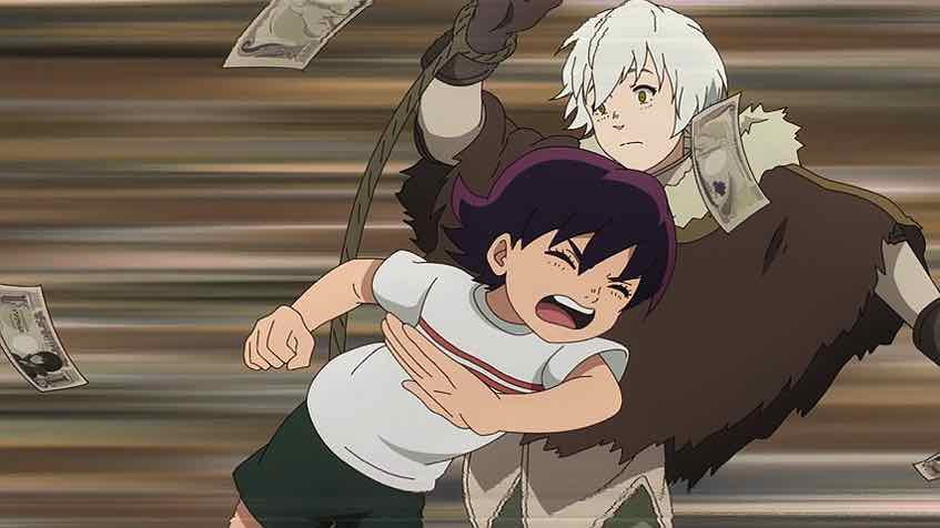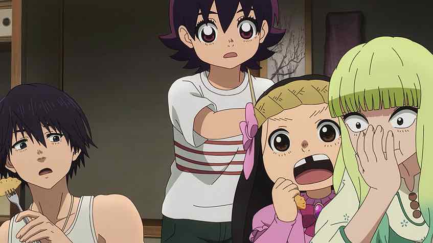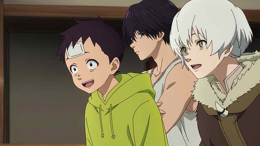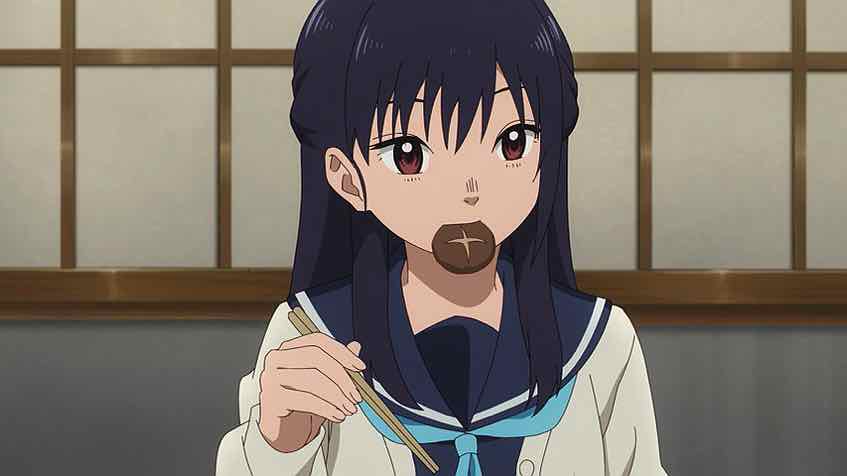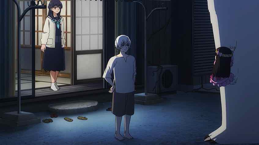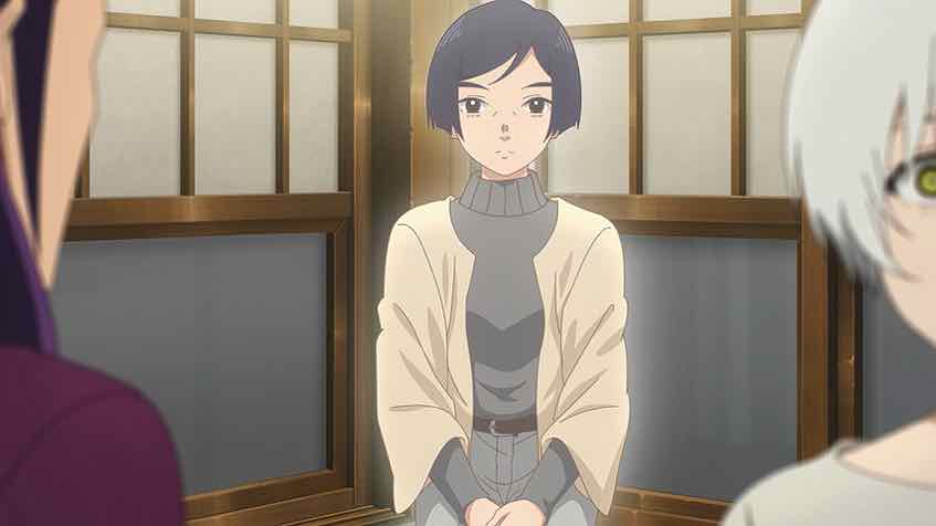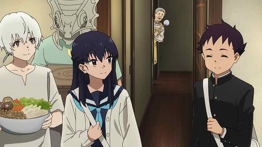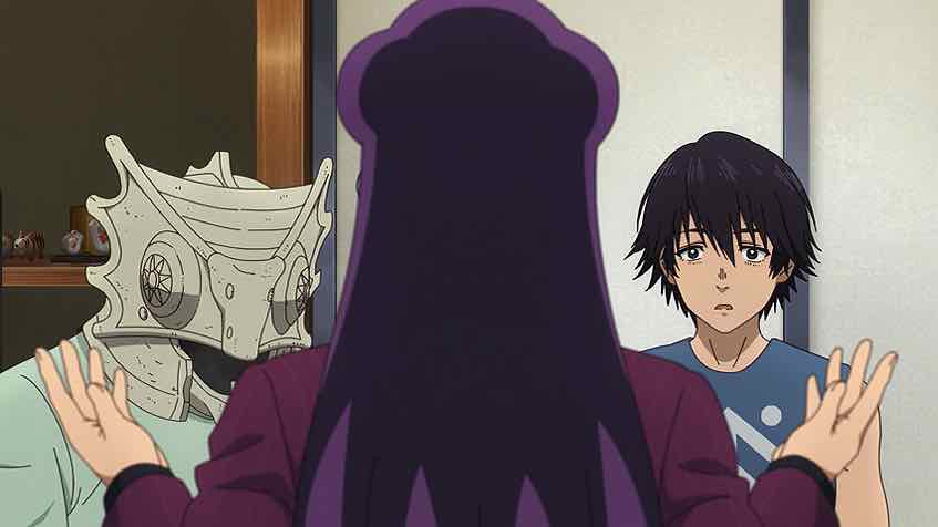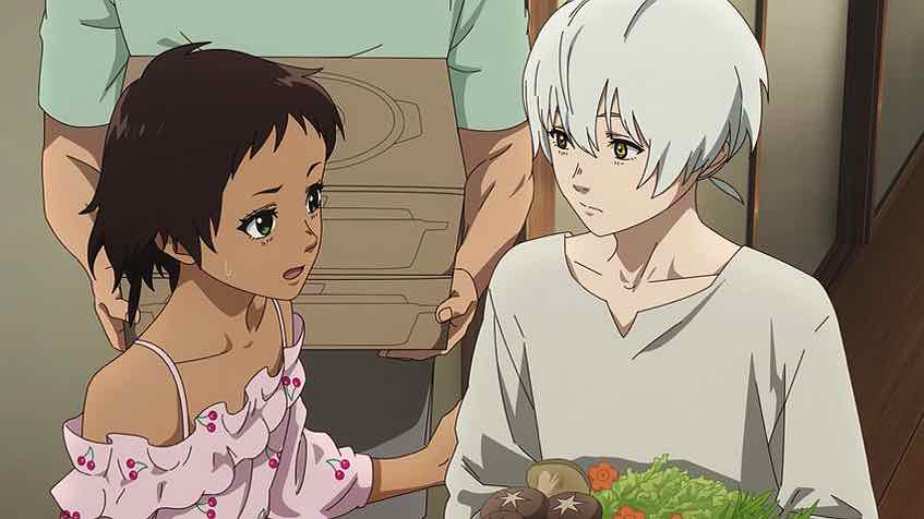 The rest of the episode is mostly slice of life, with the disturbing undercurrent of the murder lending everything an oddly surreal air (which is all very Fumetsu). Just why is Mizuha’s mother alive – if indeed she is? Fushi doesn’t know – and he asks the Black One to weigh in but gets no response (which is highly abnormal in itself). Perhaps a clue is to be found in the TV report about “indestructible boys” showing up. One of them is Fushi, but another is someone who fell from a bridge and walked away. “Probably CG”, Aiko says – which is all Greek to Fushi. But it’s hard to imagine this isn’t connected to Mizuha’s mother in some way,